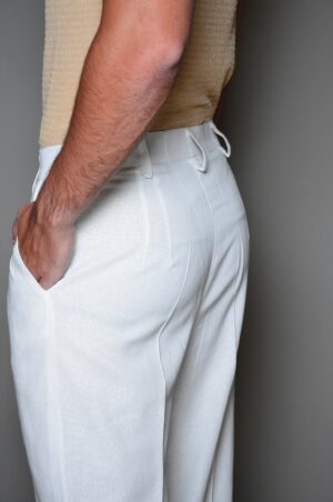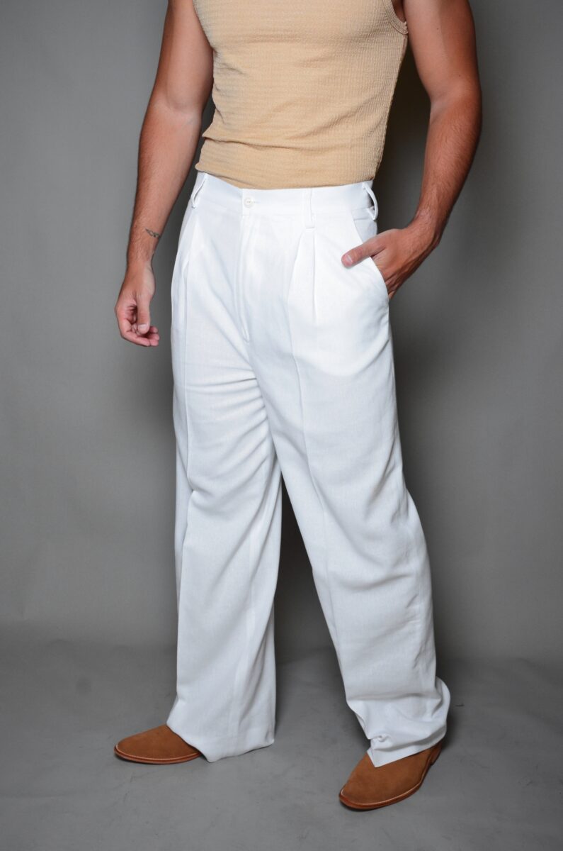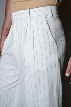 Pantalon Pinzado cintura vintage cruzada en Lino